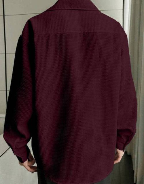 Men Regular Fit Self Design Spread Collar Casual Shirt